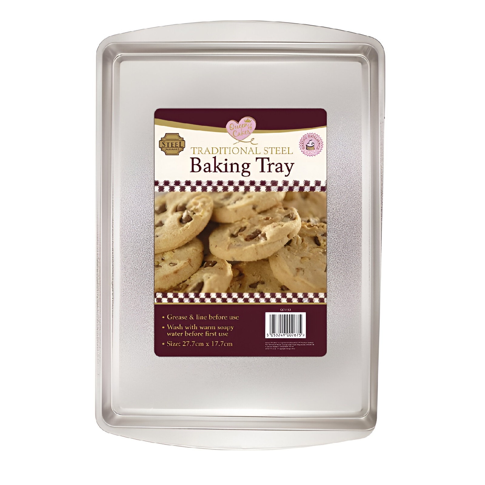 The 151 Queen of Cakes Non Stick Traditional Steel Silver Baking Tray is a high-quality, versatile baking pan designed to make your baking experience easy, enjoyable, and efficient. Made from durable stainless steel, this traditional loaf pan features a mirror finish, ensuring both aesthetic appeal and long-lasting strength. Whether you are baking meatloaf, banana bread, or a variety of other desserts, this baking tray guarantees excellent results every time. One of the standout features of this baking tray is its non-stick coating. The vibrant, metallic-coloured non-stick surface ensures that your baked goods release with ease, allowing for quick and simple clean-up. For optimal results, it is recommended to grease and line the tray before use. The non-stick coating is designed to be long-lasting, helping you avoid frustrating moments of food sticking to the pan. This tray is easy to clean—simply wash it with warm, soapy water before the first use, and hand wash with hot water and non-abrasive soap thereafter. This ensures the pan maintains its shine and non-stick properties over time. The tray steel construction is warp-resistant, making it durable and able to withstand high oven temperatures without losing its shape. The shiny or light-coloured metal finish of the tray helps in achieving balanced and consistent browning of your baked goods, especially when baking bread, cakes, and other treats. While dark-coloured pans are better suited for creating golden-brown crusts on bread, this silver tray ensures an even, beautiful bake with a perfect texture every time. Its versatile design makes it an ideal choice for both everyday bakers and those who enjoy making homemade specialties. The 151 Queen of Cakes Non Stick Traditional Steel Baking Tray measures 27.7cm by 17.7cm, making it perfect for baking a variety of treats, from small loaves of bread to cakes and other desserts. The compact size ensures easy storage while still providing enough space for baking recipes that require a traditional loaf pan. This baking tray is a must-have in any kitchen, whether you are an experienced baker or just starting out. Another important feature of the tray is its compatibility with different baking methods. It works perfectly for oven use, offering an even heat distribution that ensures a golden-brown crust on your bread and baked goods. The traditional design of the tray helps produce a consistently delicious loaf of bread or cake, making it a reliable addition to your bakeware collection. Crafted with both functionality and style in mind, the 151 Queen of Cakes Non Stick Traditional Steel Baking Tray is the perfect blend of performance, ease of use, and durability. Whether you are making a classic loaf or experimenting with a new recipe, this high-quality baking pan ensures great results every time.