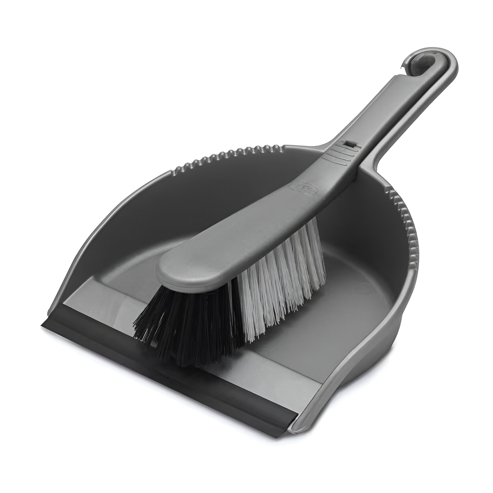 Heavy duty dustpan and stiff brush set designed for tough cleaning tasks. Hard wearing construction suitable for demanding garden floor DIY and building use. Stiff nylon bristle fill for effective sweeping of heavy debris. Strong brush bristles ideal for indoor and outdoor surfaces. Robust rubber dustpan lip for improved debris collection. Rubber lip sits flush to the floor to prevent dust escape. Handle made from durable rubber and nylon materials. Comfortable grip for better control during extended use. Dustpan and brush lock together securely for storage. Compact design with dimensions of 21 length x 21 width x 21 height centimetres. Metallic silver colour for a clean and professional appearance. Suitable for floors patios garages sheds and workshops. Designed for both domestic and heavy duty cleaning tasks. Made in the EU to high manufacturing standards. Reliable Addis quality built for long lasting performance.