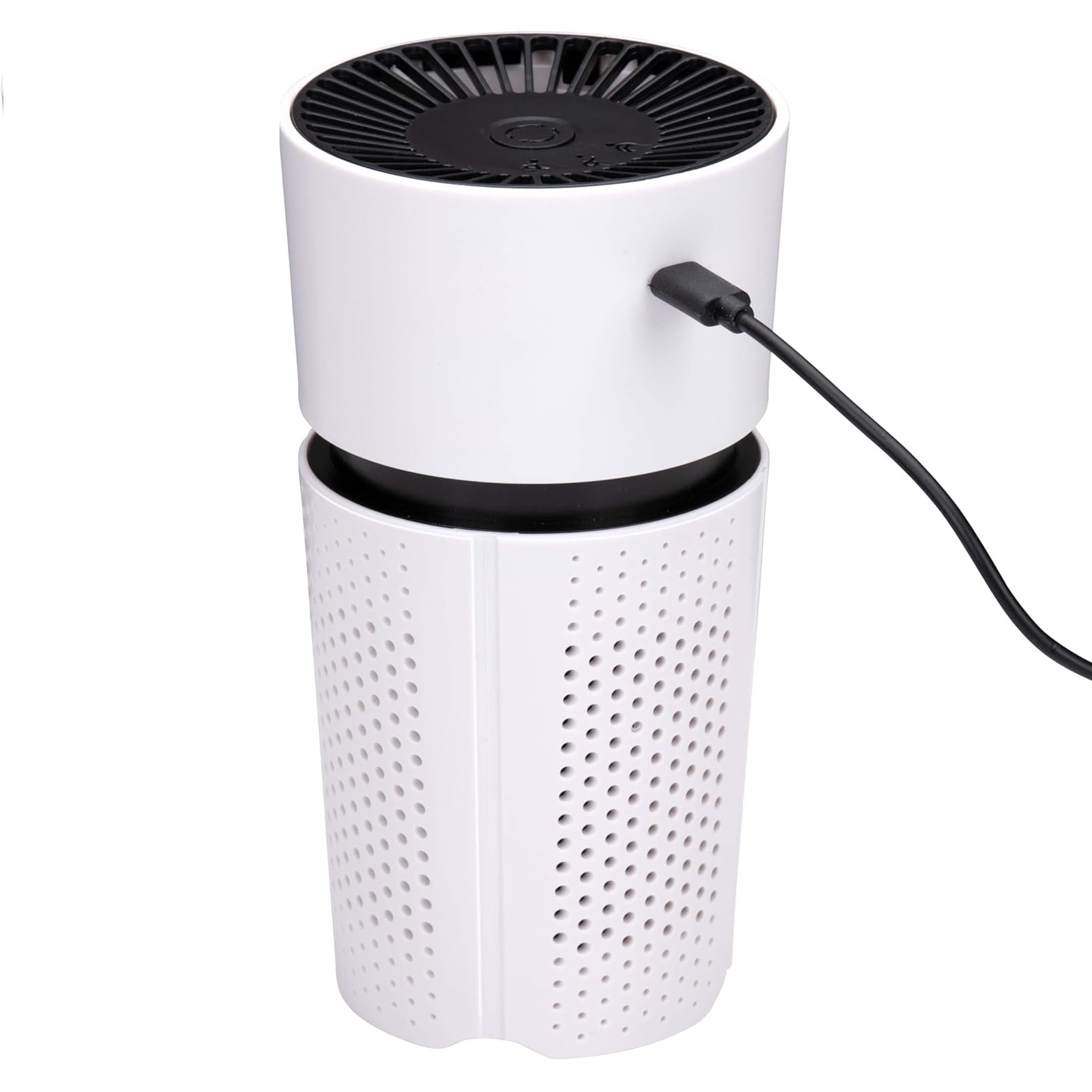 Introducing the Alpina USB air purifier, a compact and versatile solution designed to enhance the air quality in spaces up to 6 square meters. With a convenient 1-meter cable length and a USB-A plug, this air purifier is adaptable for various environments, such as your car, toilet, or bathroom. Customize your air purification experience with the choice of three different speed settings, allowing you to tailor the airflow to your specific preferences and needs. The air purifier is equipped with advanced H13 type HEPA filter technology, ensuring the effective removal of fine particles and promoting a healthier living space. Ideal for small areas, this air purifier boasts a range of up to 6 square meters, making it perfect for those intimate spaces that require a breath of fresh air. The included 1-meter charging cable with a universal USB-A plug adds to its convenience, ensuring easy and accessible power supply. The Alpina USB air purifier goes beyond basic air filtration with its silent sleep mode, providing a peaceful environment while maintaining optimal air quality. The ionization function further enhances air freshness, creating a revitalizing atmosphere. Say goodbye to impurities and welcome a cleaner, fresher air experience with the Alpina USB Air Purifier – the perfect solution for those seeking efficient air purification in compact spaces.