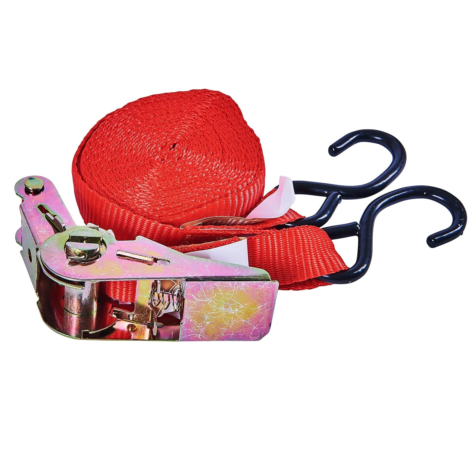 Amtech ratchet tie down 25mm has durable weather-resistant polyester webbing. Automatic locking ratchet action secures items quickly and easily. Quick-release high-tension handle. Resistant to cutting and abrasions. Suitable for tying down large, bulky and awkwardly shaped loads during transit. Ratchet straps heavy duty S hooks and soft loops straps help create tie down anchor points to strap items to cars, SUVs and trucks. Ergonomic rubber grip handles make it easier to hold while ratcheting to secure your loads safely during transport.