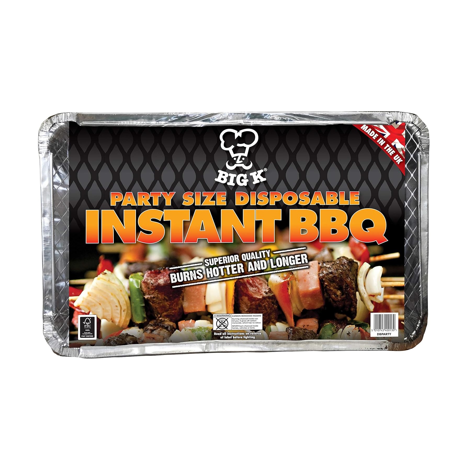 Single use barbecue filled with instant light lumpwood Ready to cook within 20 minutes with up to 1-hour cooking time. Picnic sized giving you extra room, ultra deep foil tray for improved performance. Quick and easy to use, lights with a single match. Suitable for meat, vegetables, and barbecue skewers cooking. Strong foil tray offers stability during cooking sessions. No additional fuel required, pre-filled with quality charcoal. Brand - Big K. Colour - Silver.Delivery Information