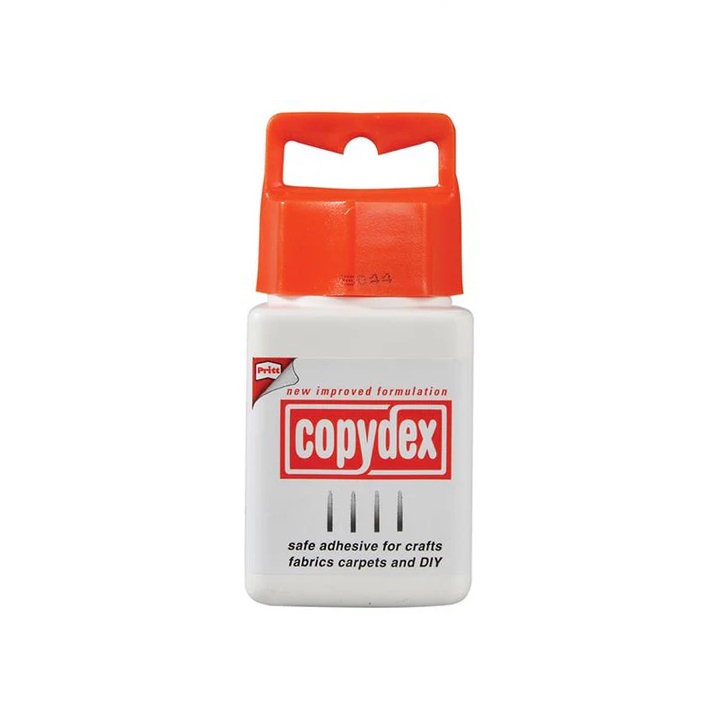 Multi purpose adhesive suitable for crafts fabrics carpets and DIY. Provides strong flexible bonding for various materials. Ideal for fabric applications without stiffening or damaging delicate surfaces. Suitable for carpet fixing repairs and general household projects tasks. Water based formulation ensures safer use in home environments everyday. Flexible bond prevents cracking peeling and material separation over time. Easy application allows repositioning before adhesive fully sets during use. Brand - Copydex. Colour - White and Orange. Size - 125ml.Delivery Information