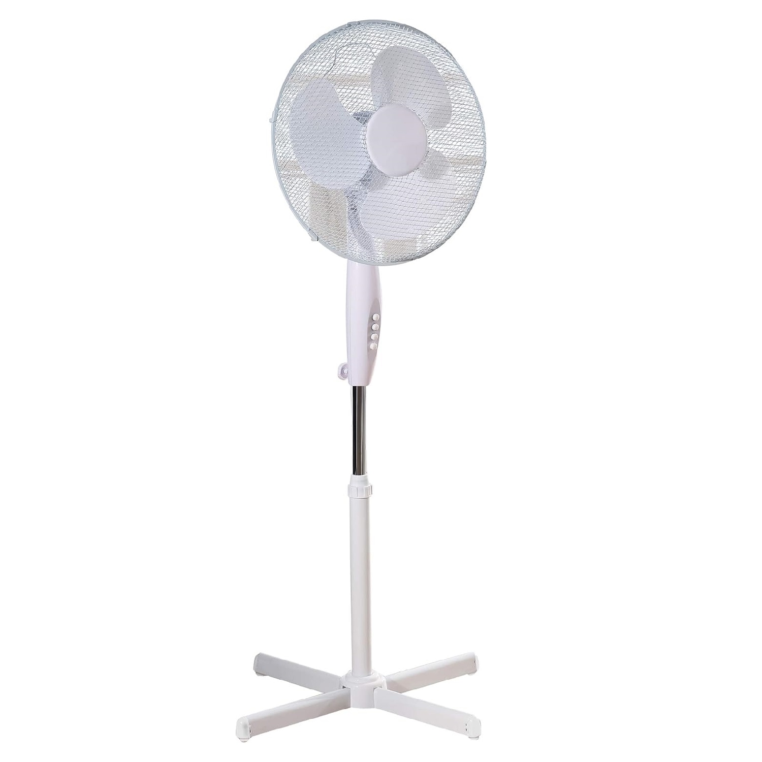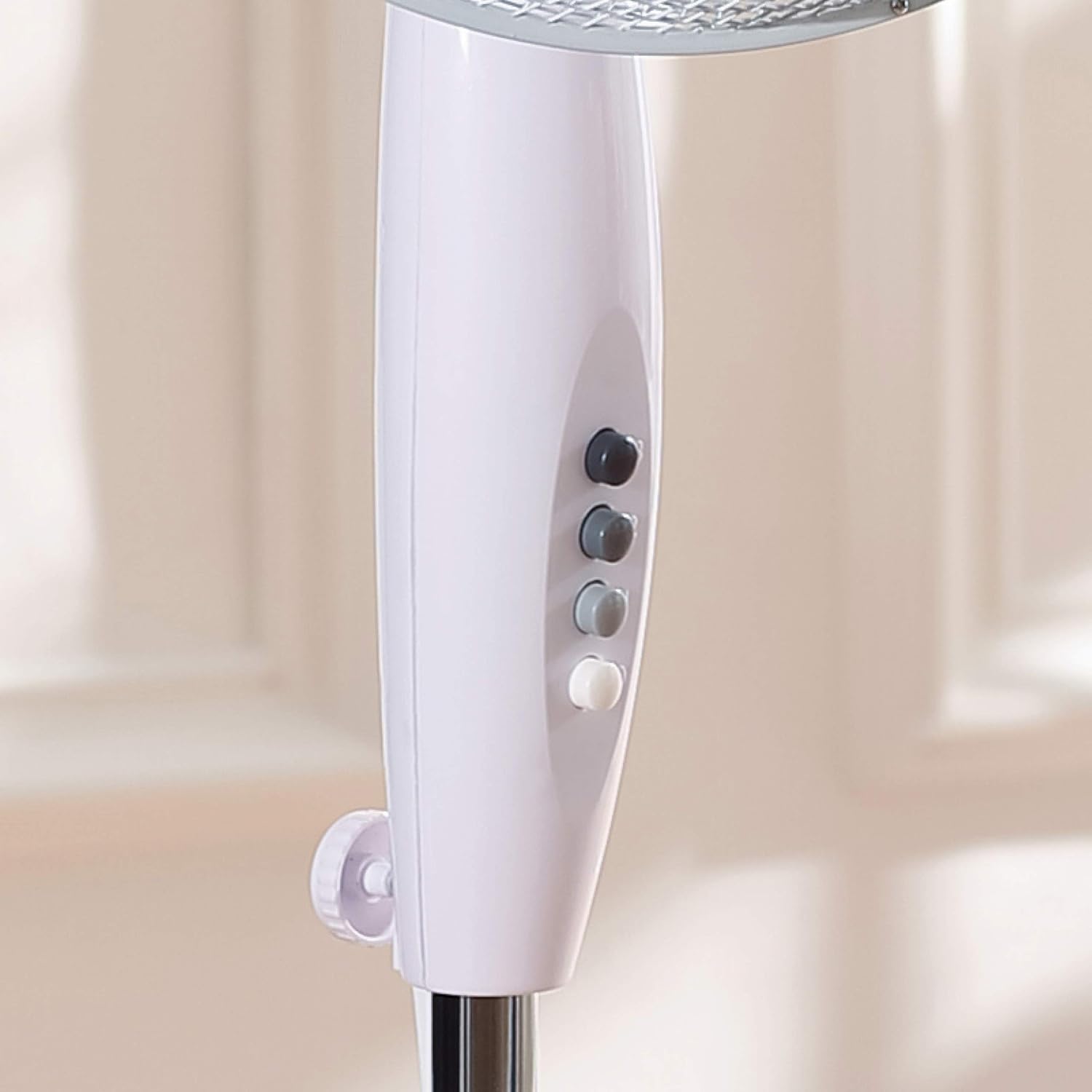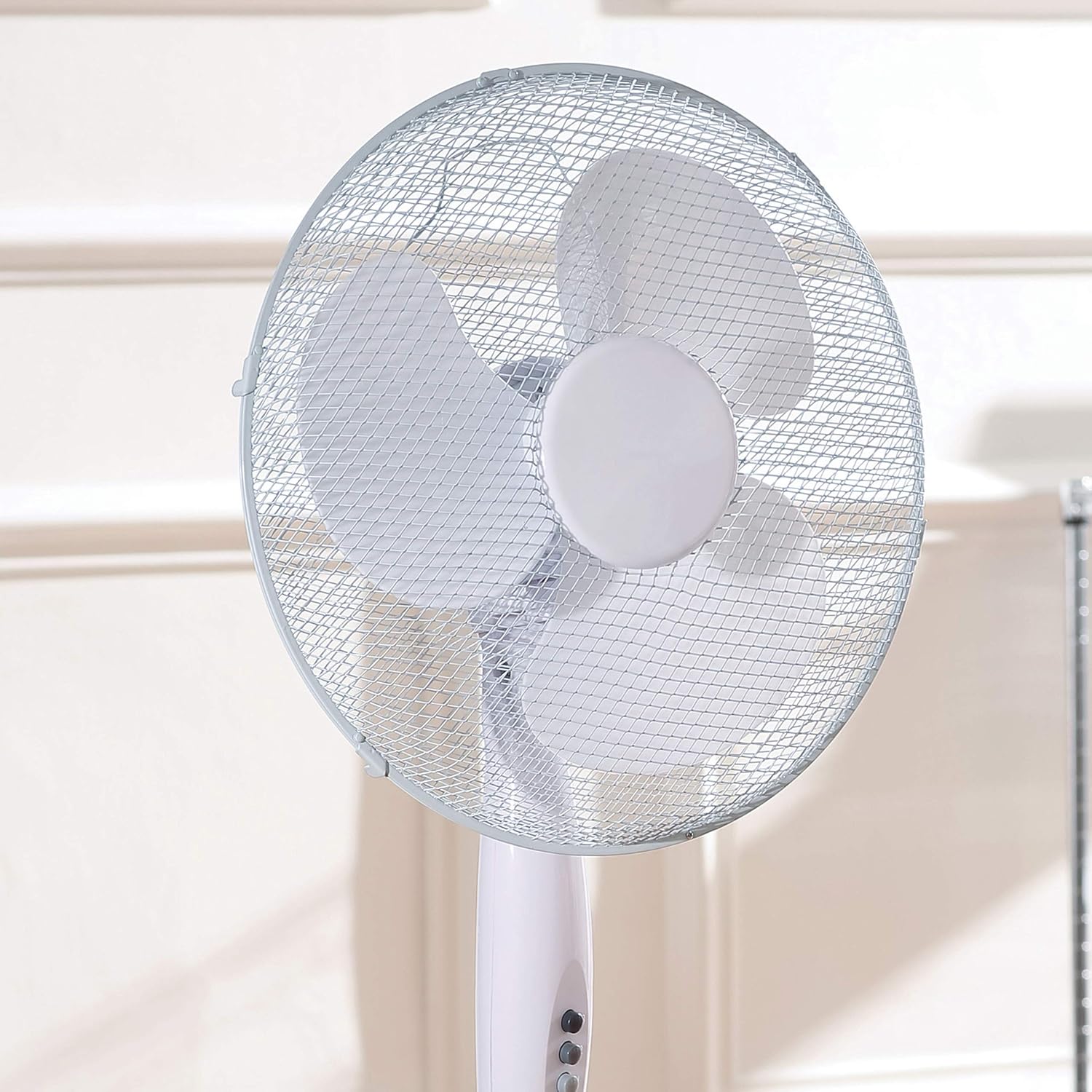 Large 16-inch fan head for wide air coverage. Three speed settings to suit different temperature needs. Adjustable height for customised airflow direction. Oscillating function helps distribute cool air evenly. Mesh safety grille for enhanced airflow and protection. Three durable blades ensure consistent air delivery. Strong and stable 600 millimetre cross base. Up and down tilt function to target specific areas. Sleek white finish blends with modern décor. Ideal for home, office, conservatory or bedroom use. Lightweight and portable for easy movement. Simple manual control panel for quick adjustments. Quick and easy to assemble and disassemble. Quiet operation suitable for use during work or sleep. Provides instant relief from warm indoor temperatures.Customers Viewing This Page May Be Interested in These Sponsored Links