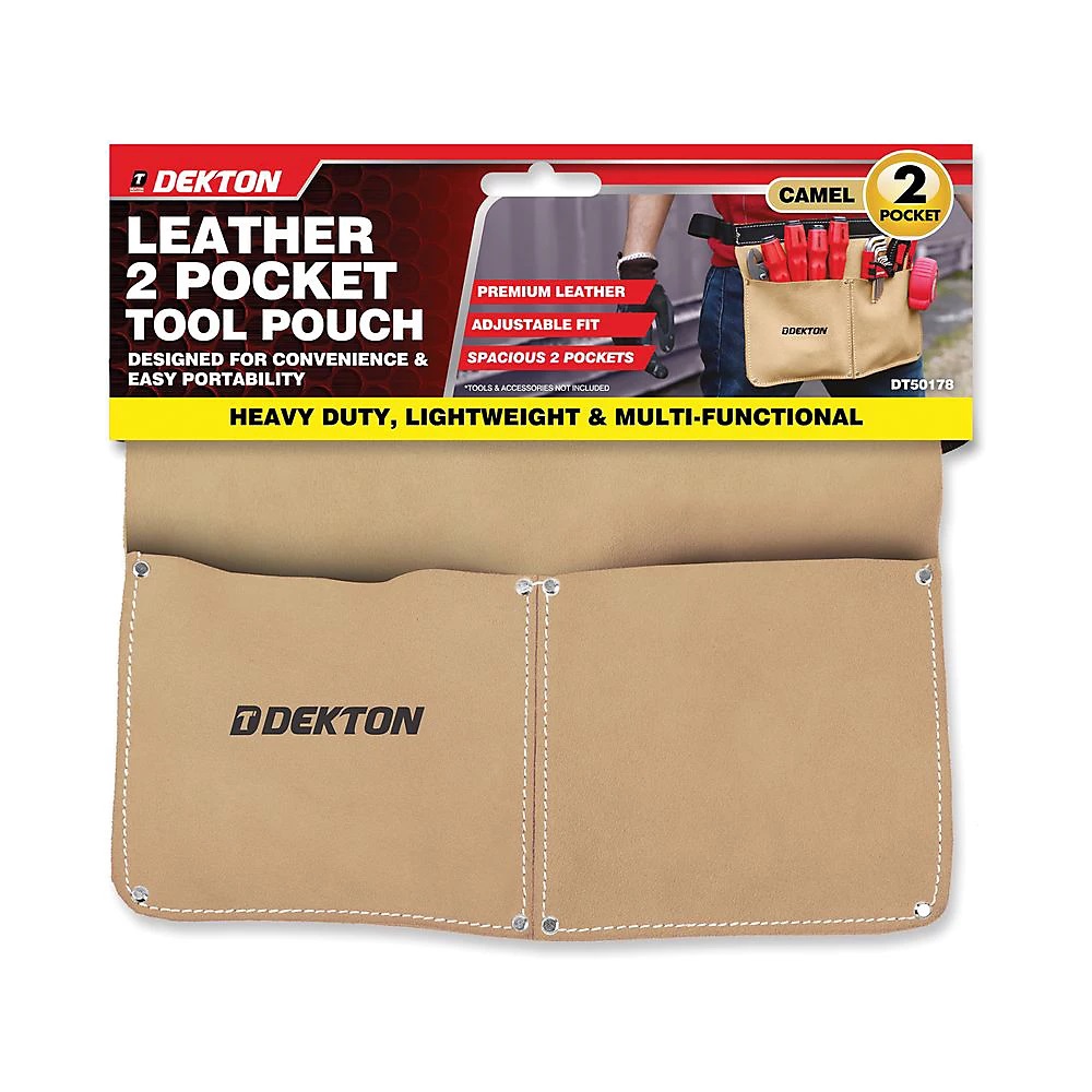 The Dekton premium leather 2 pocket tool pouch is a high-quality, practical storage solution designed for both professionals and DIY enthusiasts. Crafted from durable premium leather, it offers exceptional strength and long-lasting performance, making it perfect for heavy-duty use in demanding work environments. Featuring two spacious pockets, this pouch provides ample storage for essential tools, ensuring they are always within easy reach. The adjustable fit design allows it to comfortably suit various waist sizes, while its lightweight construction ensures you can wear it all day without discomfort. Its multi-functional layout makes it suitable for a wide range of tasks, from carpentry and construction to electrical and home repairs. The strong stitching and reinforced seams enhance its durability, while the stylish camel colour adds a professional look. Ideal for keeping tools organised, secure, and easily accessible, this leather pouch helps improve efficiency and workflow on the job. Whether you are a tradesperson or a hobbyist, the Dekton Premium Leather 2 Pocket Tool Pouch delivers the perfect balance of functionality, comfort, and style, making it an essential addition to your tool kit.