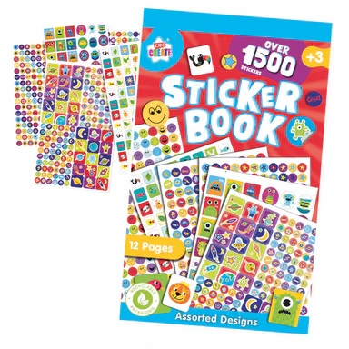 Design Group Kids Create 12 Pages Arts and Crafts Sticker Book Assorted Set of 1500-Pcs - Various designs Smiley Faces, Well done, etc. Ideal for reward charts and rewarding positive behaviour. This Reward Sticker Book contains 12 sheets of stickers with over two thousand to choose from. The adhesive stickers can be easily removed from the paper backing and then placed in the area of choice. The pack contains over two thousand stickers.