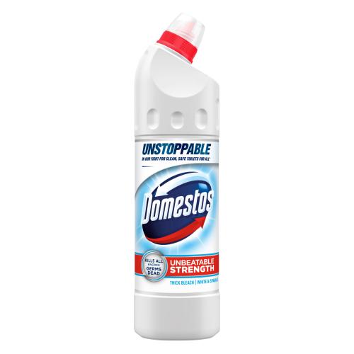 Domestos kills germs dead. Domestos extended power ultra white and sparkle bleach, with anti-limescale active molecules sticks even below the waterline to remove stains and help prevent the build-up of limescale for up to 3 x longer than before. This 750 ml bottle of Domestos ultra white and sparkle bleach is ideal for everyday use in the bathroom and kitchen a conveniently-sized bottle that will help to kill germs.