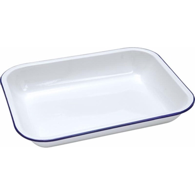 Durable enamel coating ensures long lasting kitchen performance. Classic white finish with stylish blue rim design. Ideal for roasting meat vegetables and lasagne dishes. Even heat distribution delivers consistent cooking results. Strong steel core provides excellent oven durability. Easy clean surface resists stains and food residue. Suitable for everyday cooking and baking tasks. Lightweight design allows comfortable handling during use. Scratch resistant enamel maintains attractive appearance longer. Perfect size for family meals and gatherings. Brand - Falcon. Colour - White. Size - 28cm x 23cm.Delivery Information