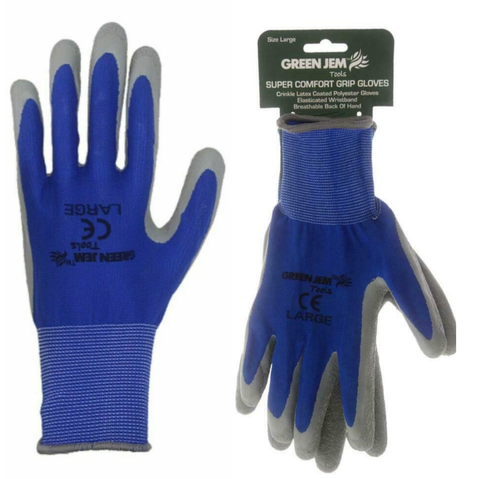 The Green Jem Large Super Comfort Grip Gloves are the perfect choice for gardening, DIY projects, and other general tasks that require hand protection and dexterity. These multipurpose gloves offer excellent protection against dirt, debris, and minor cuts and abrasions, making them ideal for both indoor and outdoor use. The flexible material allows for easy movement, ensuring that your hands stay comfortable while you work. Designed with a crinkle latex coating, these gloves provide a superior grip, helping you handle tools and materials with ease, even in wet or slippery conditions. The breathable polyester fabric ensures that your hands stay cool and comfortable throughout long periods of wear, preventing sweat buildup and discomfort. Lightweight and easy to wear, the Green Jem Large Super Comfort Grip Gloves offer the perfect balance of durability and flexibility, making them suitable for a variety of tasks such as gardening, construction, cleaning, and more. Whether you are digging in the garden, fixing up the house, or completing any other DIY project, these gloves are a reliable and essential addition to your toolkit, offering both comfort and protection with every use.