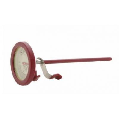 A crucial piece of equipment required to detect the correct setting point temperature, enabling successful preserving. This stainless steel preserving thermometer clips to the side of your jam pan making it easy to monitor the temperature of the recipe whilst leaving your hands free. The clear and easy to read dial face with protective heat resistant silicone band. Measure from 40°C to 140°C. Ideals for preserving recipes. This thermometer can also be used when cooking meats and baking. The setting point for jams , jellies and marmalades is from 104°C to 105.5°C. Comes with protective probe cover for safe and easy storage.