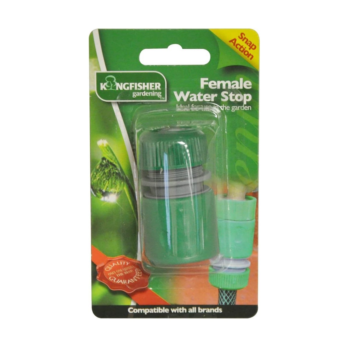 Snap-on female water stop connector ensures quick, leak-free hose changes. Automatically stops water flow when accessories are disconnected. Universal compatibility fits most standard garden hoses and attachments. Durable plastic construction designed for regular outdoor garden use. Prevents water wastage while changing sprinklers or spray guns. Ideal for gardens, lawns, patios, and outdoor cleaning tasks. No tools required for quick installation and removal. Helps maintain consistent water pressure during hose operation. Brand - Kingfisher. Colour - Green.Delivery Information