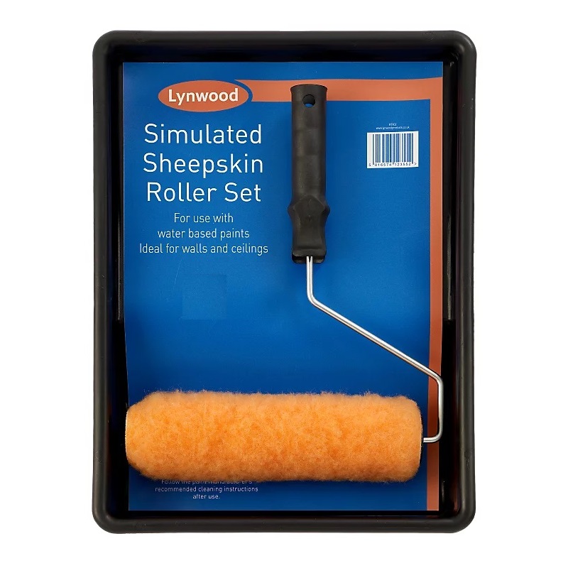 Simulated sheepskin roller delivers smooth, even paint coverage on surfaces. Ideal for water based paints on walls and ceilings indoors. ncludes durable tray for efficient paint loading and distribution evenly. Comfortable handle provides secure grip during extended painting sessions comfortably. Simulated sheepskin material reduces splatter while applying paint smoothly consistently. Suitable for walls, ceilings, and smooth interior surfaces at home. Ideal roller set for DIY home improvement painting projects indoors. Lightweight design minimizes fatigue during longer decorating projects at home. Brand - Lynwood. Colour - Black and Orange. Size - 7-inch.Delivery Information