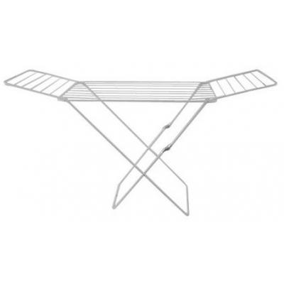 Foldable clothes drier. Ideal space saver or for when there is a limited drying area. Coated tubular-steel frame won’t rust either and opens smoothly to display. Eleven drying rods with plastic end caps and non-slip plastic feet. Preassembled. 18 meters long with children safety device. Portable and durable. No maintenance required.