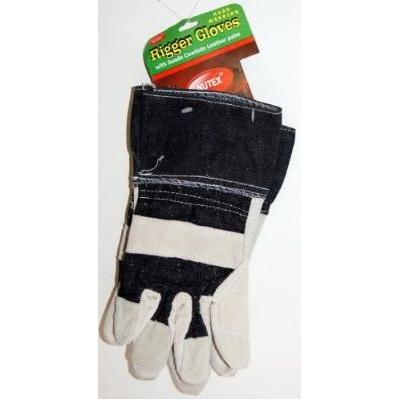 100% cotton general-purpose rigger gloves. Hard wearing and cotton-backed for comfort and durability. Suede cowhide leather re-inforced palms and fingertips. Heavy canvas cuffs. CE marked. EN388:1994