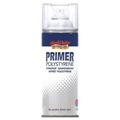 Plasti-kote polystyrene primer is specially formulated for protecting polystyrene surfaces. It creates a barrier to prevent the spray paint dissolving the polystyrene. Ideal for decorating arts and crafts. Polystyrene is available in different densities. This spray is suitable for high density polystyrene. For low-density polystyrene, it is unlikely that spray paint will be compatible. Drying time: 5 minutes between coats, 2 hours total.