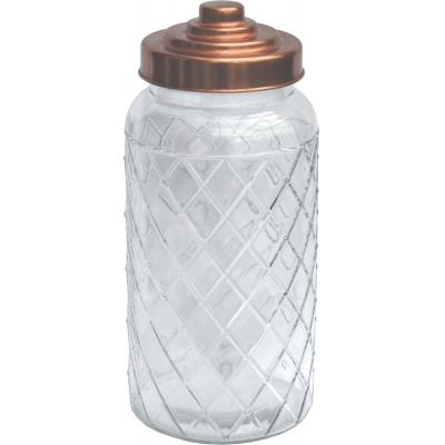 Brand - Sifcon. Type - Storage Jar with Copper Lid. Material - Glass. Capacity - 1.4 litres. Item dimensions L x W x H - 10.5 x 10.5 x 23 centimetres. Weight - 1.43 Pounds. Lattice textured glass kitchen storage jar with copper lid. Tea coffee sugar canisters. Glass storage jars. Copper coloured metal lids. Tight fitting screw on seal lids.Customers Viewing This Page May Be Interested in These Sponsored Links