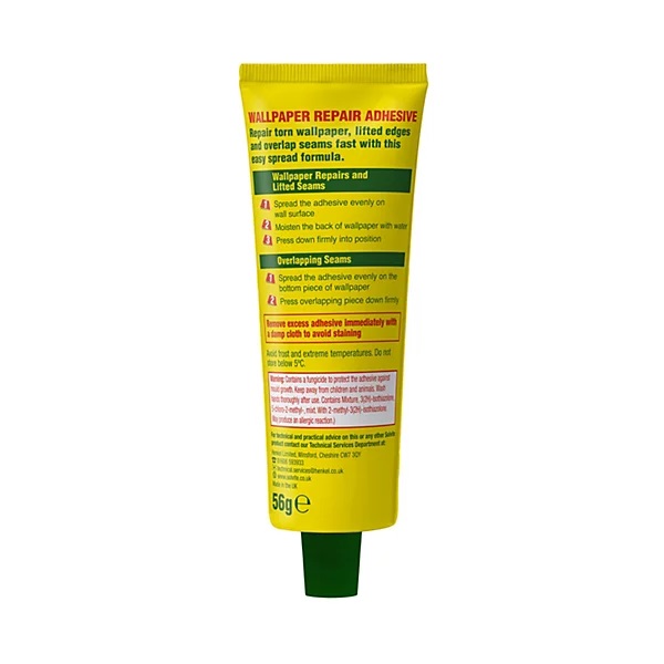 Extra strong adhesive repairs wallpaper tears seams edges quickly easily. Easy spread formula allows smooth application without mess and effort. Ideal for fixing lifting wallpaper edges around rooms quickly neatly. Strong hold ensures long lasting professional repair results every time. Perfect for small wallpaper repairs and touch ups at home. Suitable for seams tears corners and loose wallpaper areas easily. Provides neat invisible finish after wallpaper repair dries fast cleanly. Brand - Solvite. Colour - Multicoloured. Size - 56g.Delivery Information