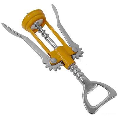 Features a heat-treated stainless steel spiral. Long life epoxy coated frame. Efficiently traverses the threads of the screw up down and back again. Effortless operation. Includes a bottle opener. Dishwasher safe. Manufacturers warranty included.