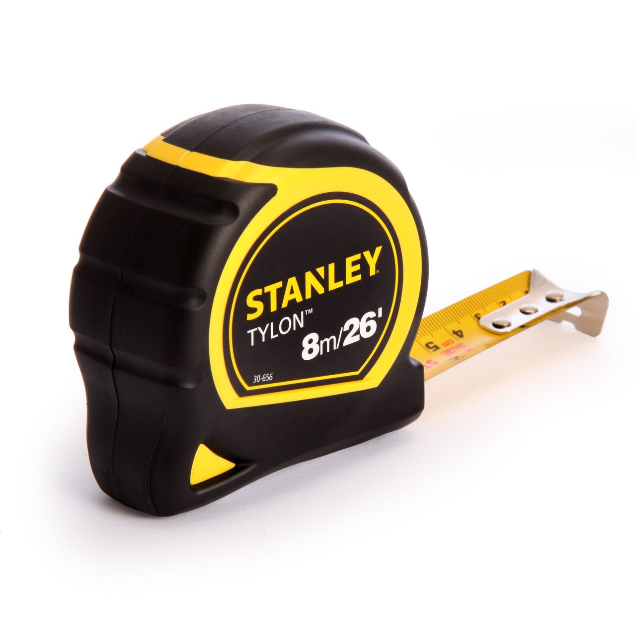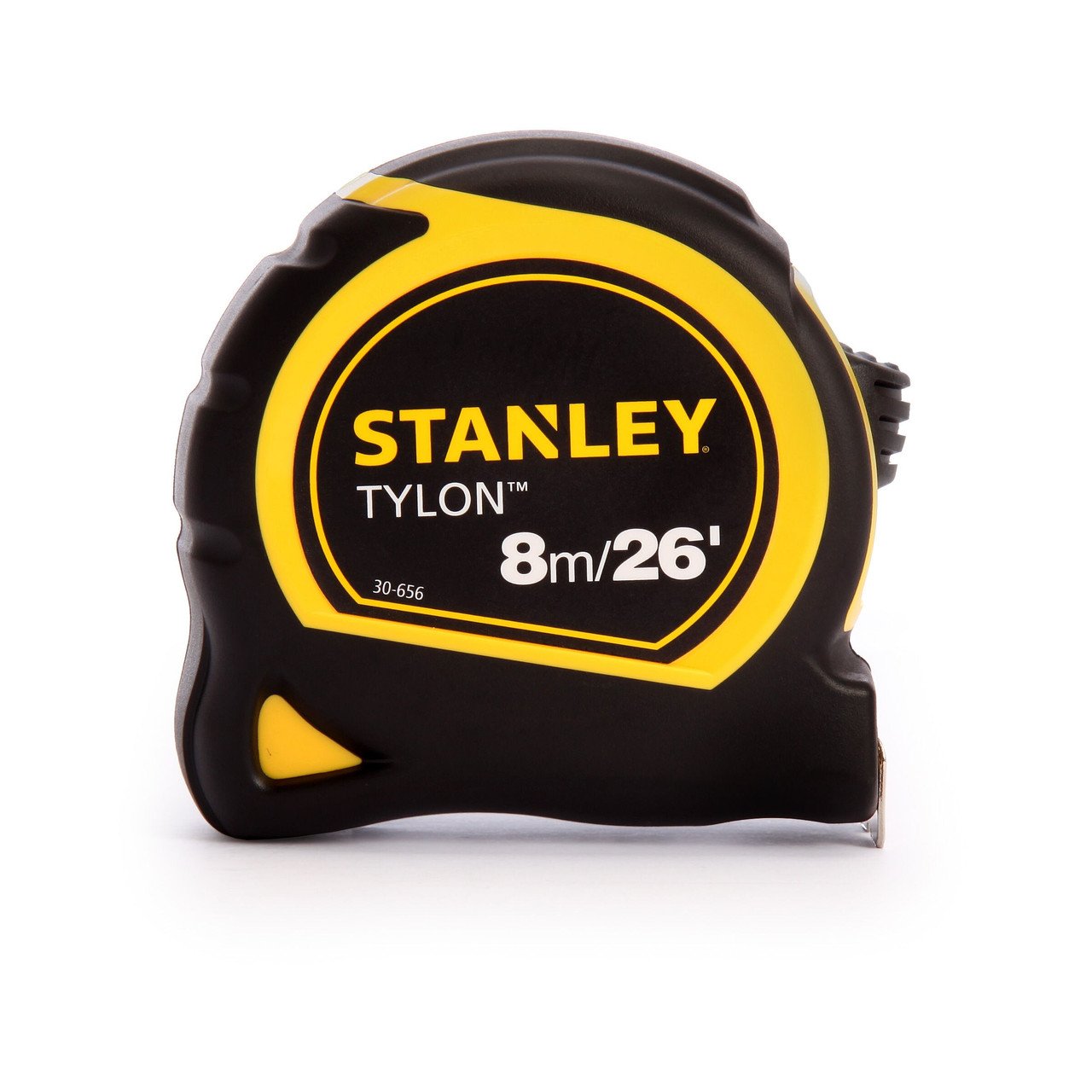 The Stanley Tylon tape measure in black and yellow is a reliable and durable measuring tool built for professional use and everyday tasks. With a total length of 8 metres or 26 feet it offers both metric and imperial measurements making it versatile and suitable for a wide range of applications. Whether you are measuring for construction DIY carpentry or general household tasks this tape measure is designed to deliver accurate results with ease. The tape features a compact ergonomic body that is comfortable to hold and easy to use. The case is constructed from a tough bi material with a rubberised grip that fits snugly in the hand and offers protection from drops bumps and general site wear. This makes it ideal for tough working environments and everyday rough handling. Its compact size also makes it easy to carry and store without taking up excess space. One of the standout features of this tape measure is the metal blade which includes a curved design to enhance its structural integrity. This added curve helps to extend the blade further without bending or snapping allowing for more stable and accurate long distance measuring. The tape also features a matt finish that reduces glare from lights or sunlight so you can read measurements clearly in any condition. The Stanley Tylon tape is coated with Tylon blade protection which improves durability and wear resistance. Compared to standard lacquer coatings the Tylon coating offers superior performance in harsh conditions and daily us. It ensures that the markings remain clear legible and resistant to rubbing off over time. For increased precision the tape includes a tru zero hook which moves slightly to accommodate both inside and outside measurements accurately. This feature eliminates the need for manual adjustments and allows you to measure with confidence. The hook grabs edges and surfaces securely reducing the chance of slipping during measurement. Convenience is built into the design with a sturdy metal belt clip located on the back of the tape measure. This clip allows you to attach the tool easily to your belt pocket or tool bag keeping it within reach at all times. Whether you are working on ladders moving around the site or simply need quick access the belt clip adds to your overall efficiency. This tape measure is an essential tool for both professionals and DIY enthusiasts. Its strong build clear markings and advanced features make it a top choice for measuring tasks of all sizes. Whether you are framing walls fitting cabinets laying flooring or measuring outdoor spaces this tool delivers accuracy and ease every time. Stanley is a brand trusted by tradespeople across the world for its high quality tools and reliable construction. This tape measure is a reflection of that reputation combining solid build quality with innovative features designed for real world use. With its long reach durable coating ergonomic grip and dual measurement units the Stanley Tylon tape measure is a practical and high performing tool that you can rely on for all your measuring needs. From home improvements to professional site work this tape will not let you down.