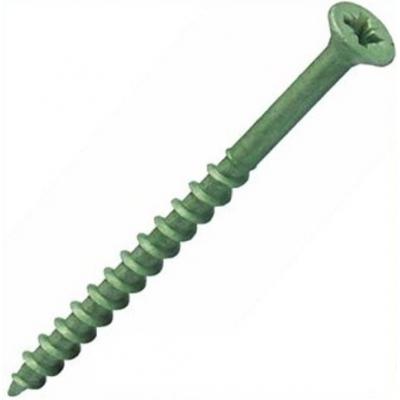 12 Rust Proof Decking Screws per pack. Countersunk for flush fitting. Hardened teel Counter sunk Pozi Drive (includes Drill screwdriver bit head). Course thread but is recommended to pilot hole first. Green treated for increased outdoor durability. Specifically designed for outside wooden decking