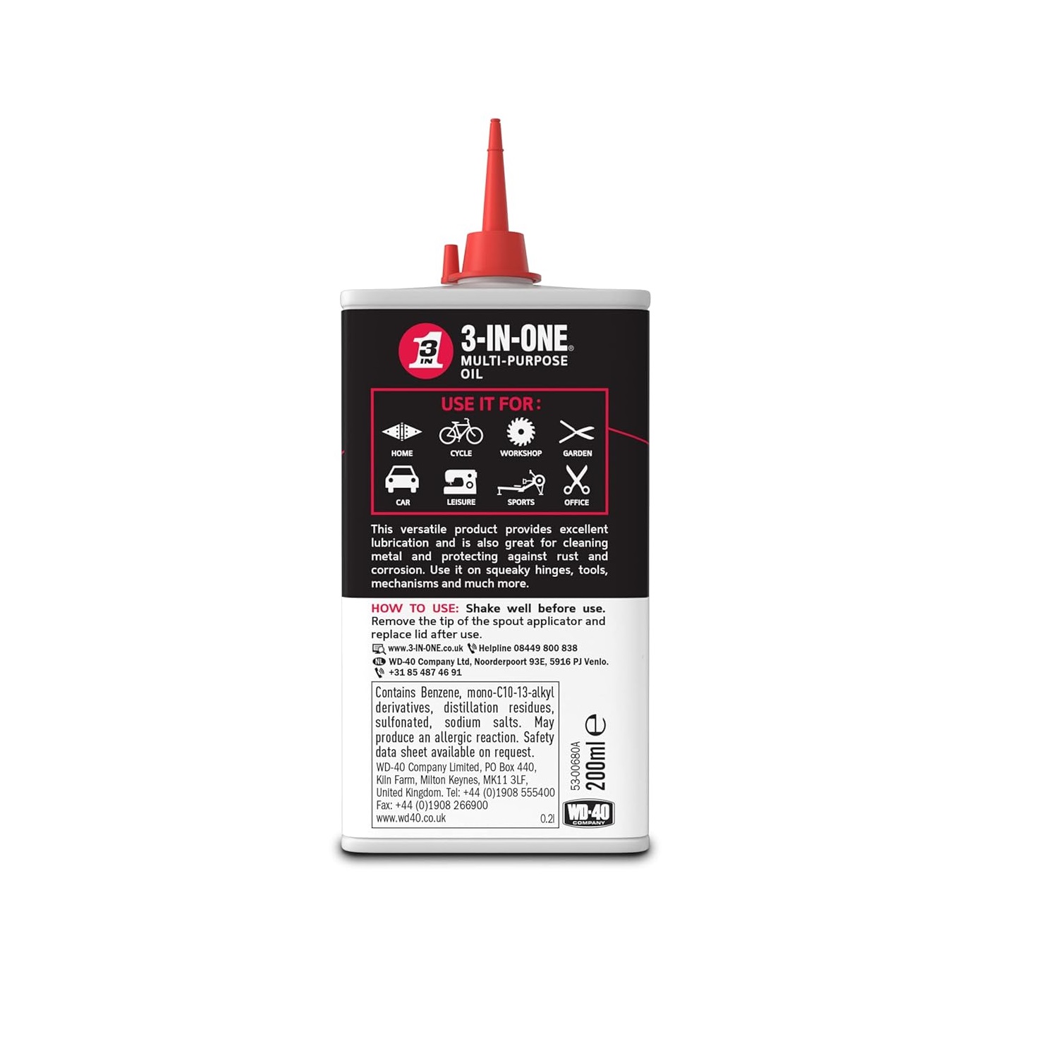Use it for cycle, workshop, garden, car, home, leisure and much more. Lubricates moving parts with lasting effect. Precision nozzle allows easy targeted application. Helps prevent rust on metal surfaces. Use it on squeaky hinges, tools, mechanisms and much more. Removes stubborn dirt and grime buildup. Quick action reduces wear and tear. Easy to apply with no mess. Brand - 3-IN-ONE. Colour - White and Black. Size - 200ml.Delivery Information