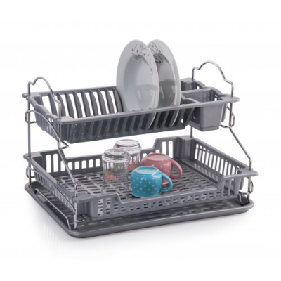Brand-Ucsan Type-Plastic double-decker dish drainer with stand Color-chrome Size-large Sturdy metal construction Rust-resistant, chrome plating Model number-LZR 509 EAN-8690012005630