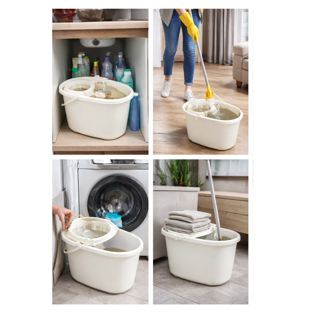 Removable wringer allows easy emptying and cleaning convenience. Strong carry handle ensures comfortable transportation when full. Integral pouring spout enables controlled and mess free draining. Sturdy plastic construction designed for long lasting durability. Compact design fits easily into cupboards or storage. Ideal for mopping floors in kitchens and bathrooms. Lightweight bucket design makes everyday cleaning tasks easier. Efficient squeeze wringer removes excess water quickly. Brand - Whitefurze. Colour - Silver. Size - 15-litre.Delivery Information