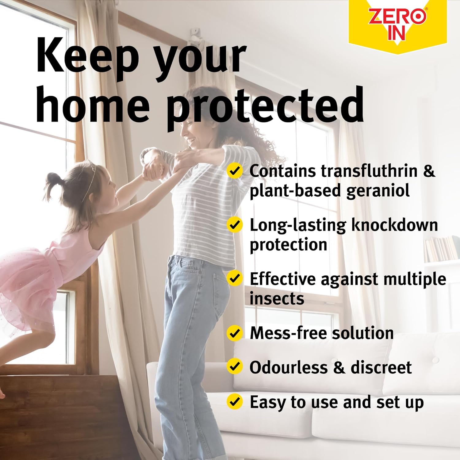 Kills flies and insects quickly for effective room protection daily. Fragrance free formula ensures no unpleasant odors during operation indoors. Portable unit allows easy movement around rooms for convenience anywhere. 90-day knockdown action provides long lasting insect control reliably. Time indicator shows remaining protection duration for user awareness easily. Suitable for whole room coverage preventing flying insect infestations effectively. Easy to set up and operate without complicated installation required. Compact design fits neatly on shelves counters or furniture safely. Safe for home use around children and pets when used properly. Brand - Zero In. Colour - White.Customers Viewing This Page May Be Interested in These Sponsored Links