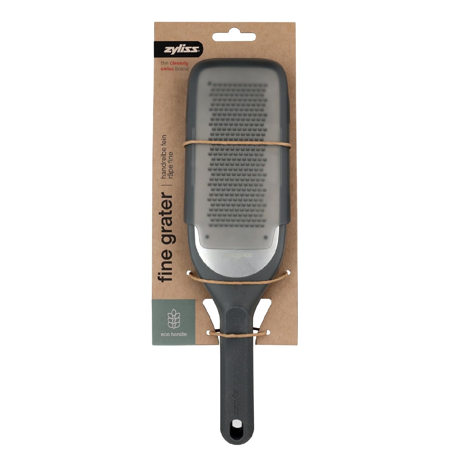 The Zyliss Fine Grater is a precise and efficient kitchen tool designed for fine grating tasks that require control, consistency, and a delicate finish. It is ideal for finely grating hard cheeses, chocolate, citrus zest, garlic, ginger, nutmeg, and hard vegetables. Designed for both everyday cooking and detailed finishing work, this grater delivers excellent results while offering comfort, safety, and sustainability. At the core of the Zyliss Fine Grater is an ultra-sharp acid etched stainless steel blade. This blade is engineered for precision and ensures clean grating without tearing or ripping food. Fine ingredients are grated smoothly, preserving texture, flavour, and aroma. Whether you are adding a light dusting of cheese, fresh citrus zest, or finely grated spices, this grater helps achieve perfect results every time. The fine grating surface is designed to deliver even and consistent output. This makes it ideal for recipes where texture matters, such as sauces, desserts, toppings, and garnishes. The sharp etched teeth reduce the amount of pressure needed, making food preparation faster and more efficient while maintaining accuracy. With dimensions of 280 mm x 72 mm x 24 mm, the Zyliss Fine Grater offers a balanced combination of compact size and effective grating area. The slim profile allows for easy handling and storage, while the generous blade surface supports efficient food preparation. It can be used directly over bowls, plates, or work surfaces with confidence and stability. Comfort and sustainability are combined in the Eco Handle design. The handle is made using wheat straw material, reducing plastic use by up to 20 percent. This environmentally conscious approach supports sustainable kitchen practices without compromising strength or durability. The ergonomic shape of the handle ensures comfort and control, even during longer preparation sessions. The non-slip handle design provides a secure grip, including when hands are wet. This improves safety and precision when grating harder ingredients that require steady pressure. The balanced construction helps reduce hand fatigue and allows for better control during fine grating tasks. The Zyliss Fine Grater also features non slip edges that enhance stability during use. These edges help keep the grater securely positioned on work surfaces and can be hooked onto the edge of a bowl. This feature ensures a safe and stable grating experience while directing grated food neatly into a bowl. A practical multi use protective cover is included with the grater. The cover protects the blade during storage, helping to prevent accidental contact and maintain sharpness. It also doubles as a scraper, allowing you to easily collect grated food from the back of the blade, reducing waste and keeping your workspace clean. In addition, the cover can be attached to the back of the grater to catch and contain food as it is being grated. This is especially useful when working with small quantities or when precise portion control is required. This thoughtful design improves convenience and efficiency during food preparation. Finished in a modern Beluga Grey colour, the Zyliss Fine Grater complements a wide range of kitchen styles. Its sleek appearance and high performance design make it a dependable and attractive kitchen essential. Combining sharp precision, ergonomic comfort, and sustainable materials, the Zyliss Fine Grater is an excellent choice for cooks who value quality and control.